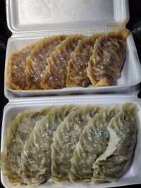 만두 하나가 손바닥 만하다. 만두피가 소에 밀착되어 빈틈이 없다. 피가 워낙 얇아 달라붙지 않게 부채질 해줘야 한다. 하루에 두 번 문을 열고 재료 소진시 문을 닫는다. 일찍 마감되니 오픈 전에 미리 가는게 좋다. 만두 종류는 고기, 김치 두 가지다. 만두 속 야채의 아삭함이 살아있다. 간도 적당하고 육즙이 촉촉하다. 김치만두는 자극적이진 않지만 약간 매콤하다. 두 가지 다 맛있어서 고르기 어렵다.