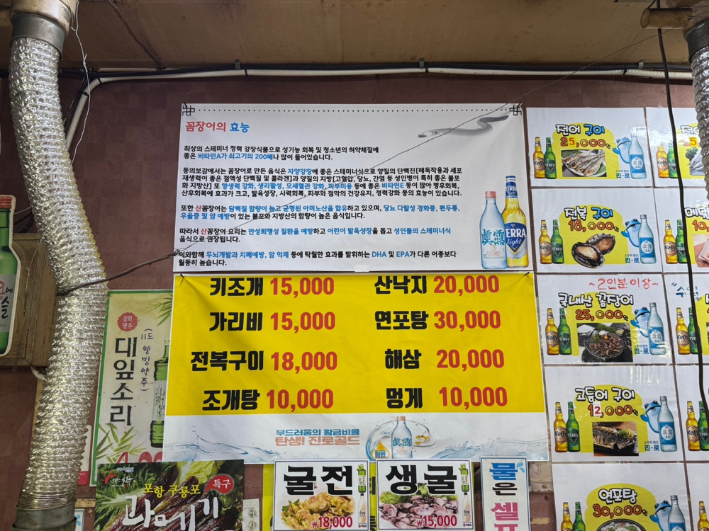 잘 손질되어 나온 사이즈 좋고 통통한 꼼장어. 직접 구워주시고 먹기 좋은 크기로 잘라 주심. 불향입은 꼼장어는 기름장에 찍어 먹으면 고소함이 배가되고 약간의 짭쪼름함이 더해져 소주 생각나는 맛. 연탄불에 구우니 기름은 살짝 빠지고 겉은 바삭, 속은 쫄깃한 식감이 살아있음. 연탄불에 구워 먹는 꼼장어 특유의 불향과 쫄깃한 식감이 인상적이었던 곳.